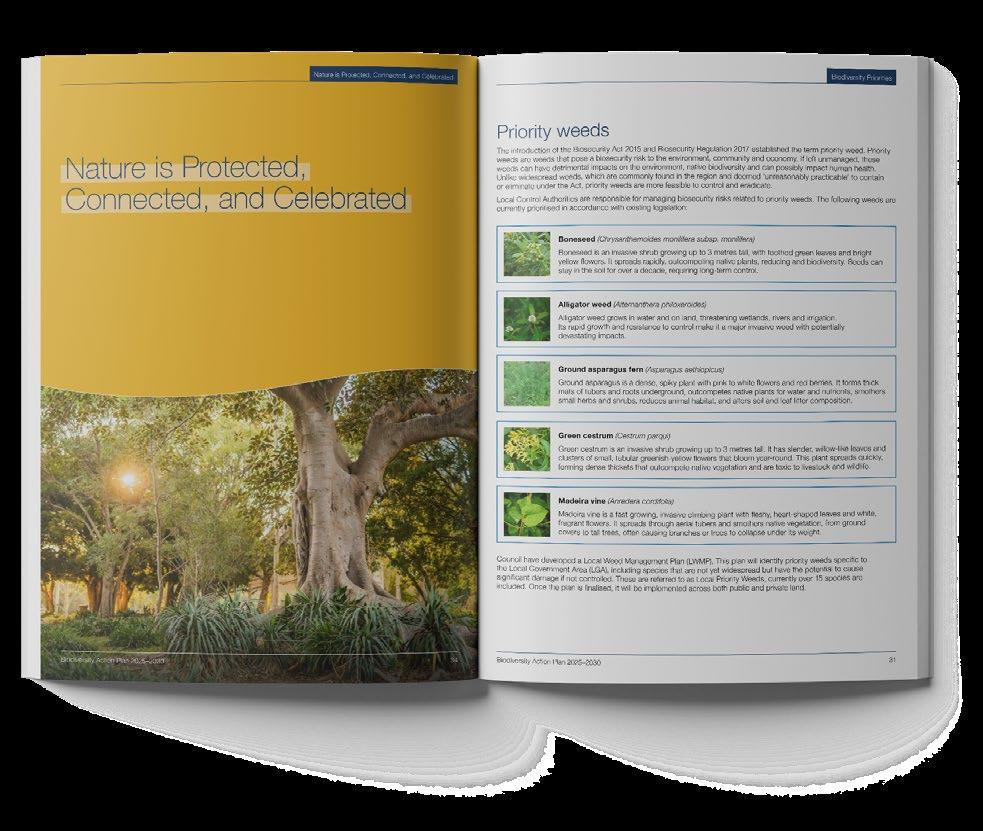 Building on the Draft Environmental Strategy, TD delivered the Local Priority Weed Management Plan with a design that integrated seamlessly into Council’s broader document suite while standing confidently as an engaging, standalone communication.