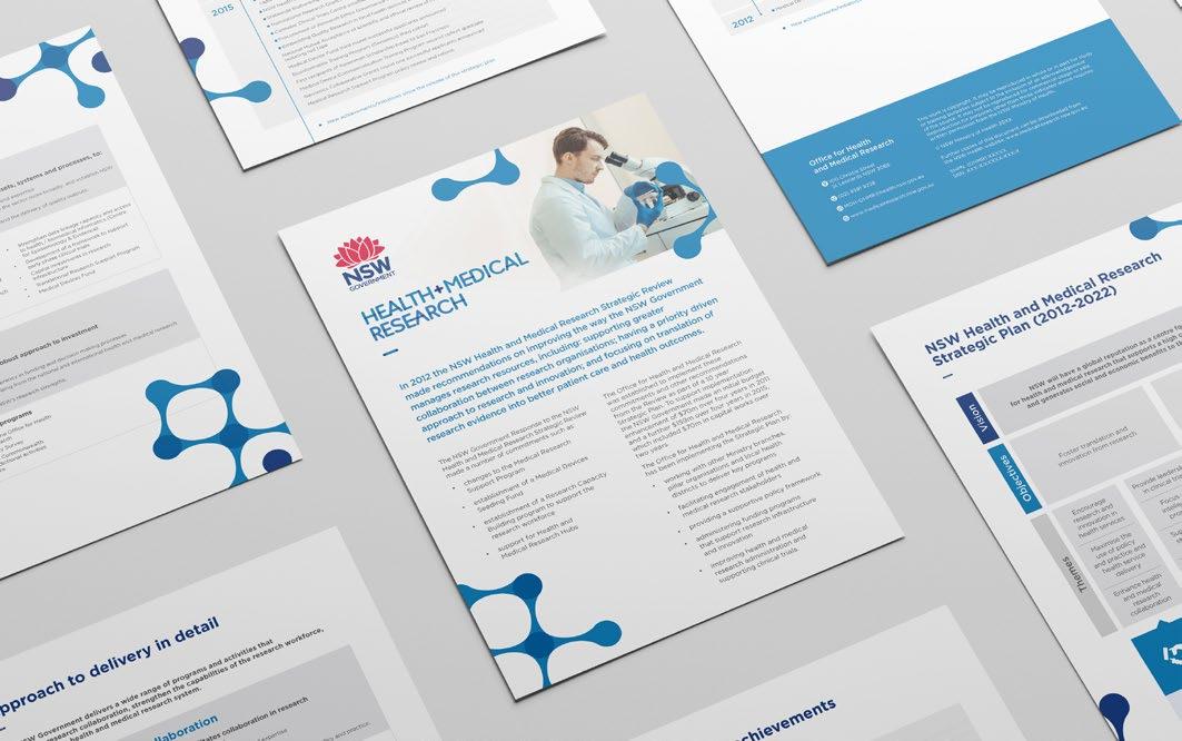 Development of a NSW Health and Medical Research visual identity and supporting creative templates that increased recognition, helped to cross-leverage initiatives and programs, and positioned NSW as a global centre of excellence.