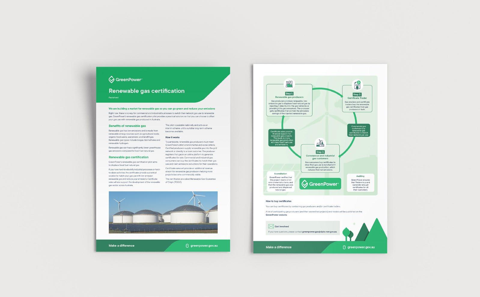 Deliver a comprehensive suite of informative resources for GreenPower, an accredited renewable energy product, ensuring clear communication of their Renewable Gas Pilot to various stakeholders.