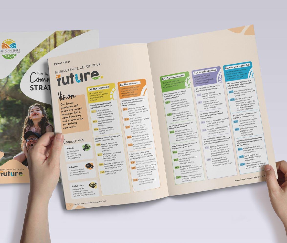 TD developed initial creative concepts designed to position the strategy cohesively alongside Council’s broader suite of documents, while also ensuring it could stand independently as an engaging and accessible communication. The selected concept then provided the creative foundation for the execution of the balance of the document.