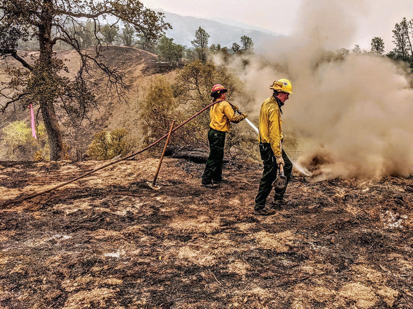 “We’re ‘mopping up,’ trying to take the heat out of hot spots,” she says. “The fire front had passed, but hot spots remained, in this case in stump holes, but can include other forest floor debris. We were hosing it down with water and mixing it with cool dirt and ash.”