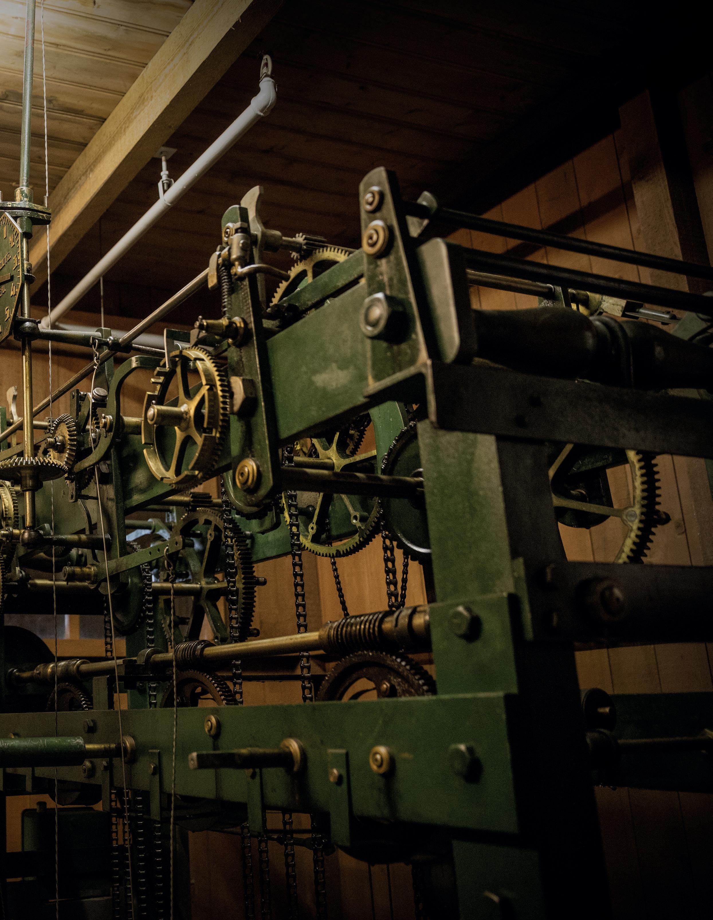 Un calibre monumental datant de 1913 et fabriqué par Eijsbouts dans le sud des Pays-Bas. «Il est doté d'un mécanisme de remontoir de 30 secondes et d'un mécanisme de sonnerie pour les demi-heures et les heures tapantes. En outre, il envoie un signal électrique pour une sonnerie toutes les 15 minutes. La nuit, le carillon se tait, mais la sonnerie des heures et des demi-heures est maintenue» explique Bart. «Nous montons une à deux fois par semaine dans le clocher pour mettre à l'heure le mouvement.» Quant aux passages des heures d'été ou d'hiver, «cela doit se faire entre 2 ou 3 heures du matin, car le cadran et les aiguilles sont bien éclairés.» Et il semble exclu que les habitants d'Oldenzaal, même en pleine nuit, puissent se passer ne serait-ce qu'une minute de leur repère horaire!