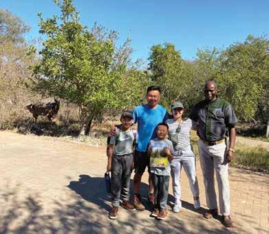 Jimmy, Johanna, Avery and Cameron Ta enjoyed a South African Safari at the Rockfig Safari Lodge in Timbavati, Kruger National Park, South Africa. Here they are pictured with Ishmael, a member of the lodge staff, and a shy Kudu antelope.
