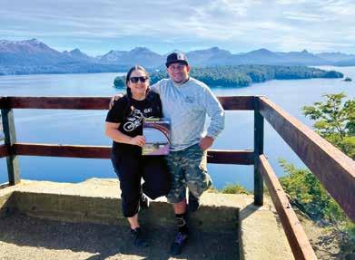 Betty De León and Chris Quintero overlooking Lake Nahuel Huapi from Los Arrayanes National Park in beautiful Patagonia. The famous Ruta 40 runs through this magical lake district.