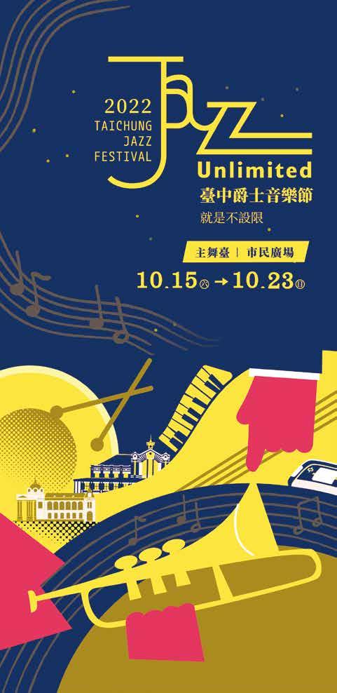 2022 臺中爵士音樂節—就是不設限 臺中爵士音樂節開啟臺中戶外空間辦理音樂節慶活動的風氣,過去已成功帶 動「10月份到市民廣場聽爵士音樂」的常民休閒文化生活。後疫情時代下,藝文 活動逐漸復甦,承襲歷年傳統,臺中爵士音樂節睽違兩年再度回歸到市民廣場大 草皮,不同於以往聚焦、聚眾於市民廣場、草悟道,這次,我們將跳脫方限之外, 不僅橫向擴張參與廣度,更著重沿線綠園道進行文化扎根。 扎實培養爵士魂,薪火相傳永續發展 爵士音樂節除了營造出聆賞爵士的浪 漫氛圍外,更致力於爵士樂的長期培訓。青 少年爵士樂團招募12至18歲的青少年, 透過嚴謹的徵選機制以及多元的專業課程 培訓,提升學員演奏技巧和對爵士樂的知 識理解,培養多元的爵士曲風、強化青年 樂手舞臺實力。結訓後,還安排參與爵士 音樂節主題曲錄製及多場公開演出、校園巡演等活動,累積學員 多元的舞臺經驗,更得以讓爵士魂薪火相傳、永續發展。 JAZZ YOUNG 爵士樂團,走入庶民生活 JAZZ YOUNG爵士樂團將透過甄選,選出8組爵士新秀及15 組樂壇強將,在正式活動前兩週,安排到臺中舊火車站、市役所、park2草悟廣場 以及臺灣府儒考棚等4個場地進行前期演出,打破在市民廣場聽爵士的印象並往 城區周邊延伸,擴大臺中爵士形象圈,並預告爵士音樂節的到來,也展現爵士音 樂的庶民精神。 2