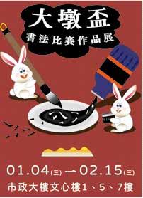 二 駐足•共賞─ 駐館藝術家簡錦清精選作品展 臺中市美術家資料館 111/12/10 六 112/01/08 日 黑韻─劉素惠水墨創作個展 中央畫廊 111/12/17 六 112/01/08 日 「經篆觀心」─阿罩霧小刀雅集聯展 展覽室B 111/12/31 六 112/01/29 日 書藝泉才─龍泉國小書法作品展 掬月廳 01/07 六 02/05 日 陳瑞瑚─刀彩溢情油畫展 展覽室C 01/07 六 02/05 日 臺中市立中港高中國中部 第十五屆美術班畢業展一「π」即合 二樓展覽室D、E 01/07 六 02/26 日 跟著阿貴去探險─ 許自貴2023立體繪畫個展 展覽室A 01/14 六 02/12 日 臺中市藝術創作協會會員聯展 展覽室B 01/14 六 02/12 日 涵融萬殊六─ 臺中市東方水墨畫會會員團體展 中央畫廊 表演 01/01 日 、01/14 六 14:00-17:00 戀戀鰲峰音樂饗宴 名留廣場 01/08 日 14:30 傳統歌仔戲─紫垣夢迴 演藝廳/現場索票