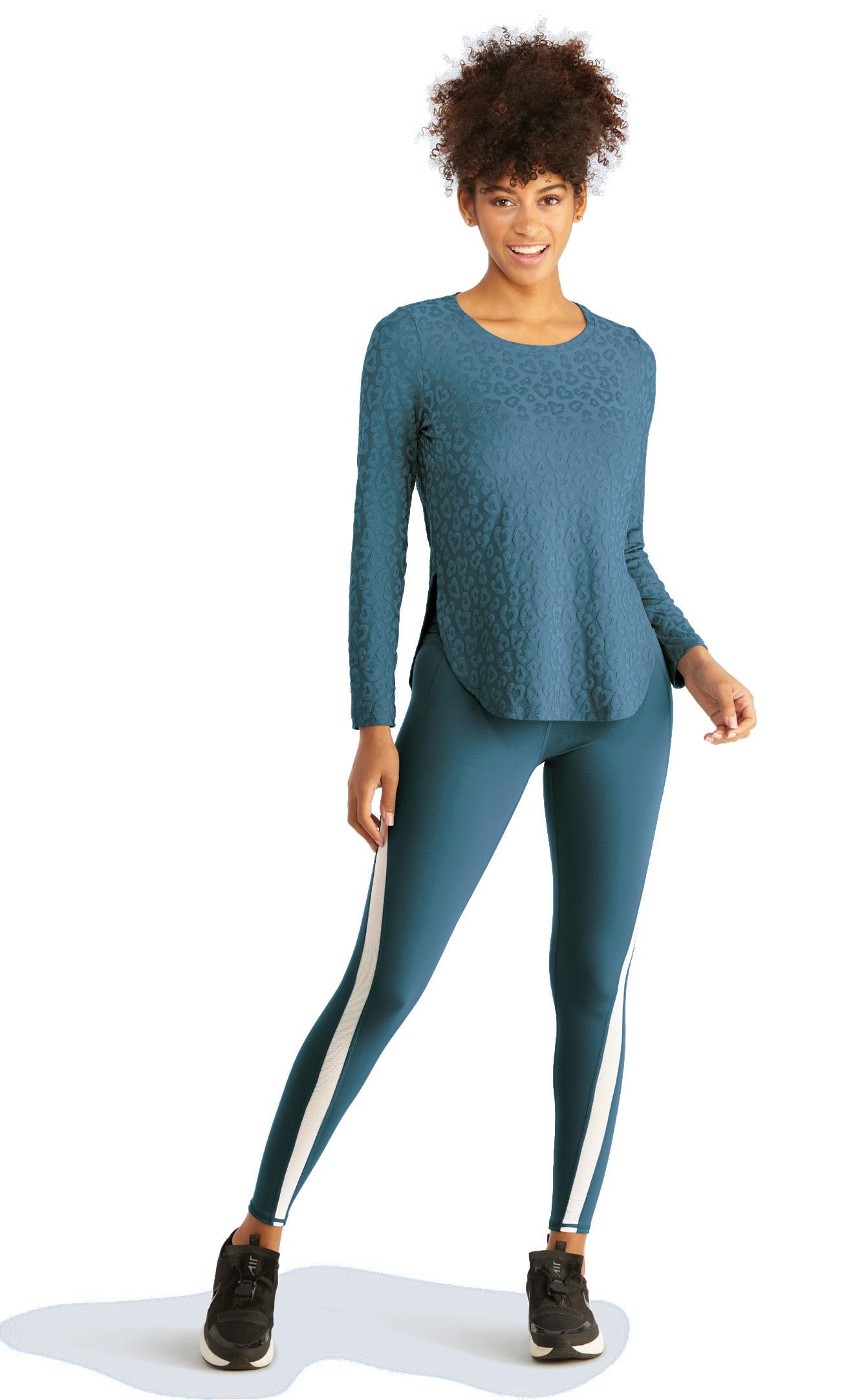 Leopard Jacquard, Boat Neck Long Sleeve Top w/ Curved Hem & Side Slits, 27” Length, UPF 50+ 91% Polyester, 9% Spandex Copen Blue XS-XXL B4100