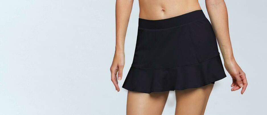 AX6215-9005 GLIMMER Cool Touch Double Knit, Dot Mesh, Skort w/ Flounce Hem, Onyx Shorties, 13.5” Center Front Length, UPF 50+ 82% Polyester, 18% Spandex Onyx XS-XXL B4100
