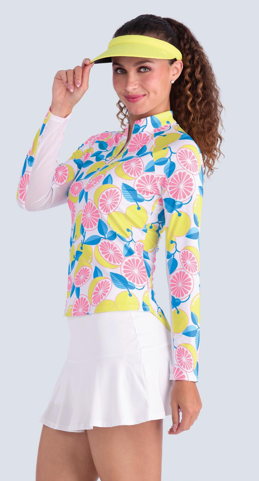 Glamor Jersey, Dash Jacquard, 3/4 Zip Long Sleeve w/ Funnel Neck & Princess Seams, 25” Length, UPF 50+