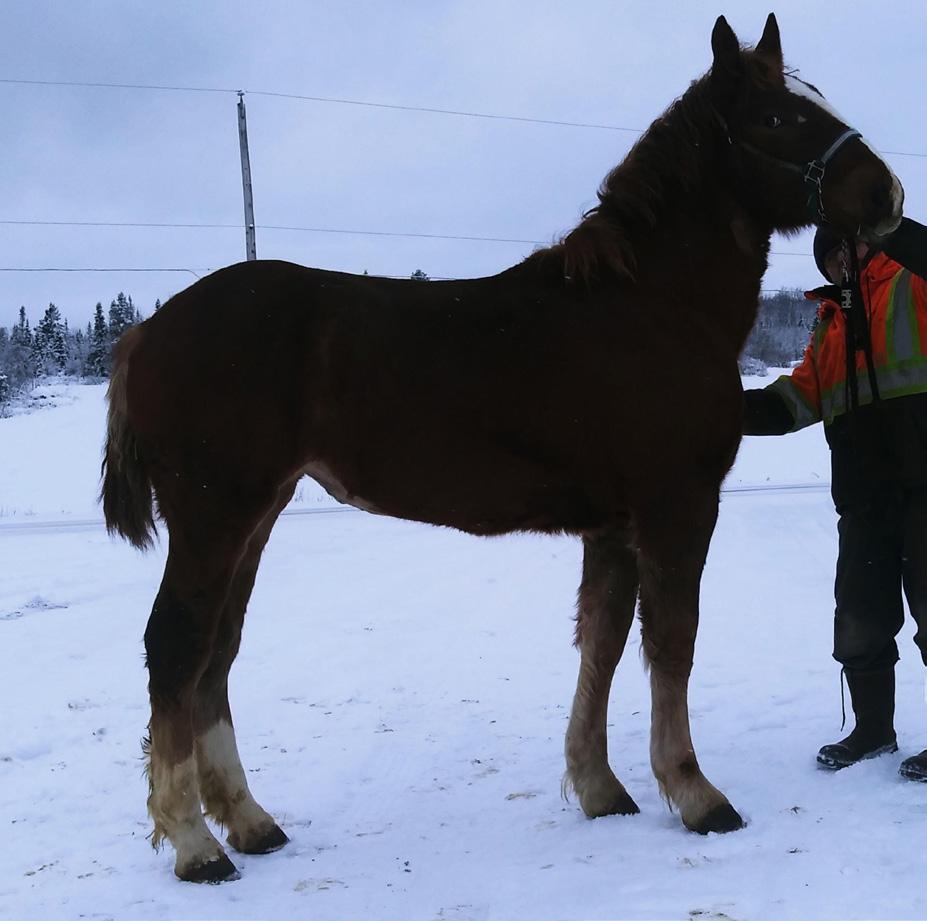 Comments: Solid bay with four white legs. Heads up flashy colt. Potential herd sire - Flashy hitch horse.