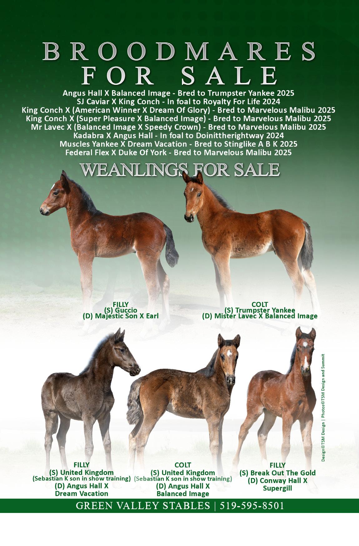 Yearlings MUST be halter broke and will be cross tied at sale facility. For the safety of the handlers of yearlings please have no more than 5 yearlings in the ring per preview at one time.