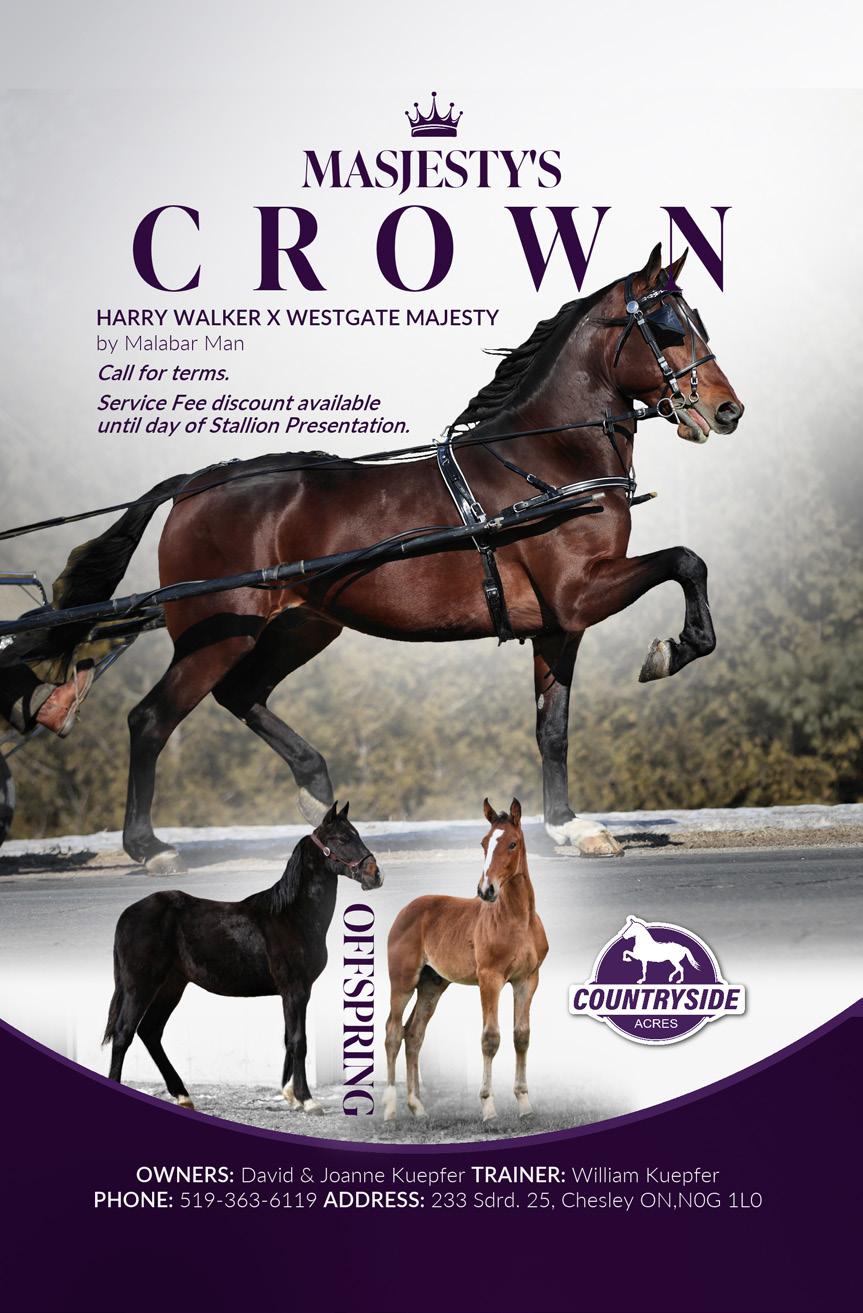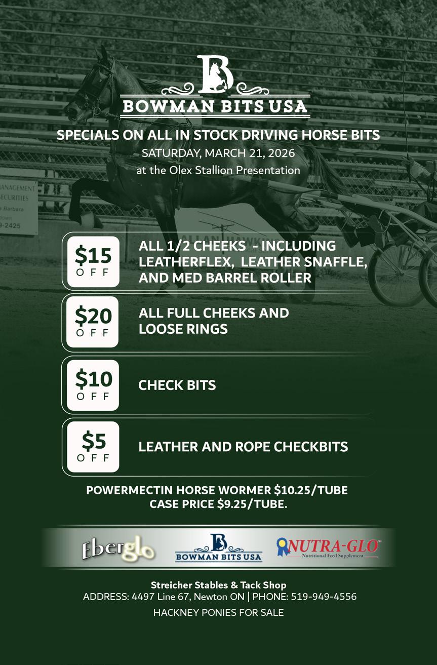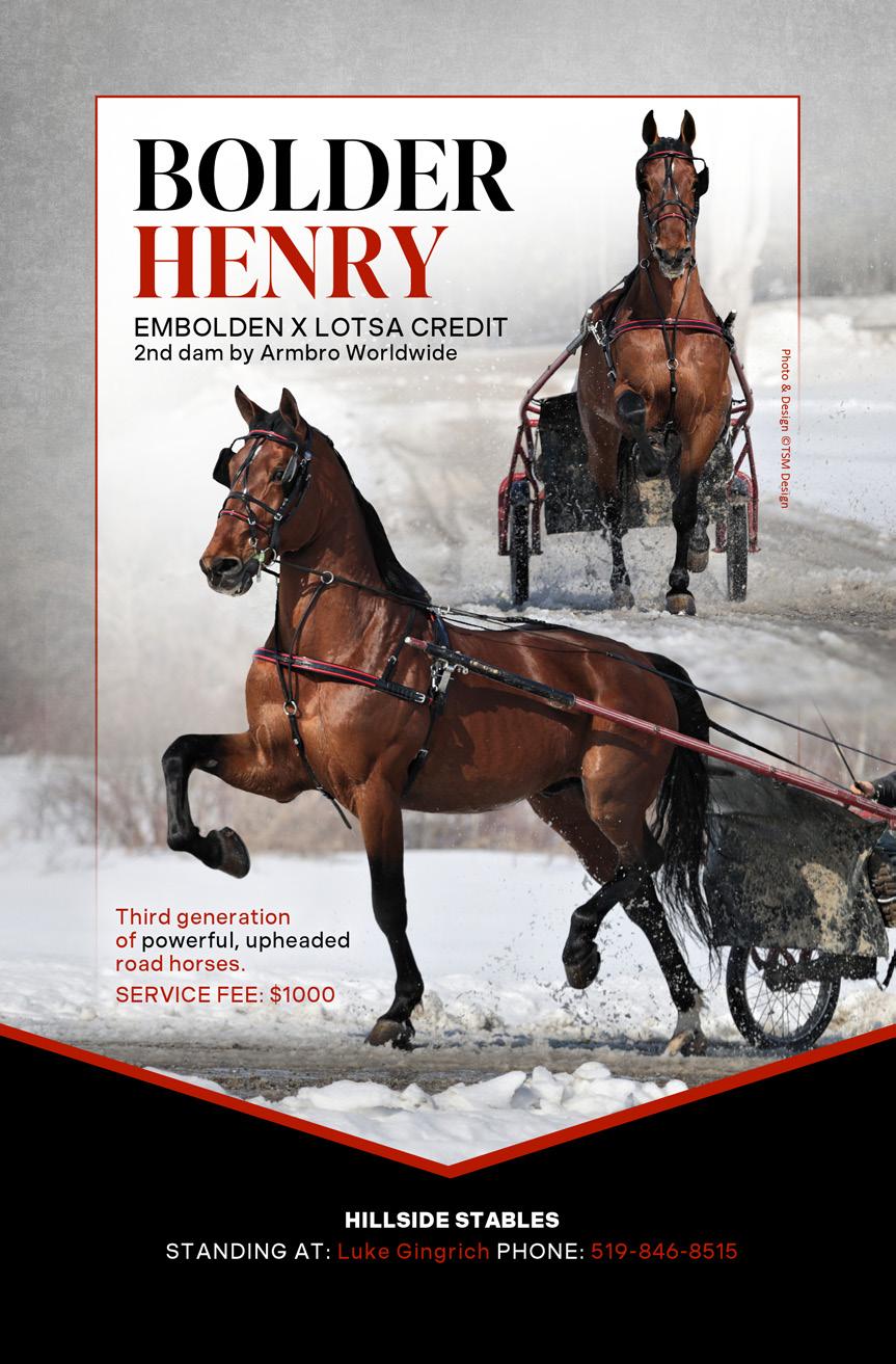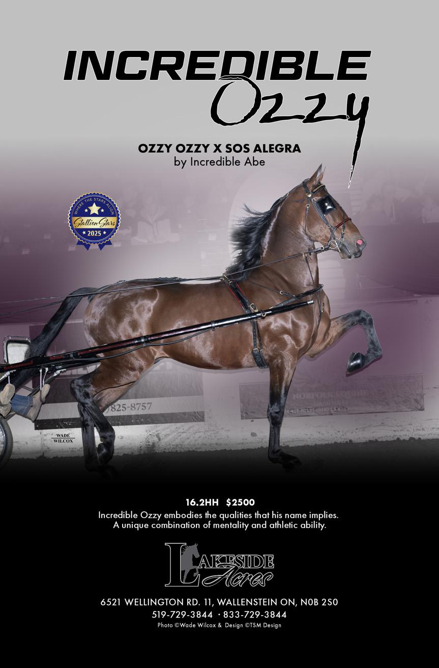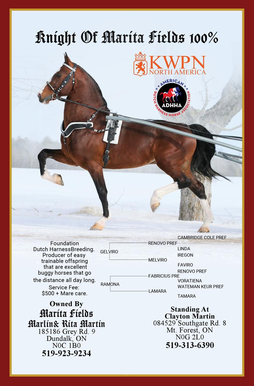 COMMENTS: Amish Boys offspring are showing a lot of promise with a bright eye, nice head and neck, with a little bit of fire. His eldest Canadian crop is now 3 years old and starting on the road. Amish Boys is standing at Carrick Stables for 2026. $650 Reg. and $500 Grade.