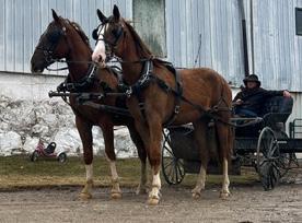 COMMENTS: Well broke and been on the highway. Sells with 2026 breeding to Streamer. Sells with Lot 4 on choice. Well matched team. They are ready to go. Pictured on left.