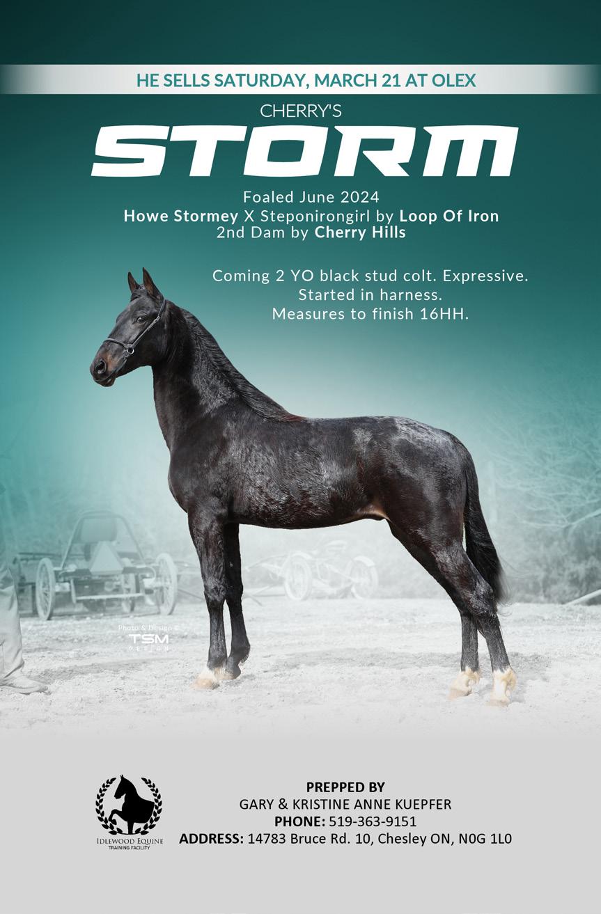 COMMENTS: Coming 2 YO black stud colt. Expressive. Started in harness. Measures to finish 16HH. Prepped by Idlewood Equine.