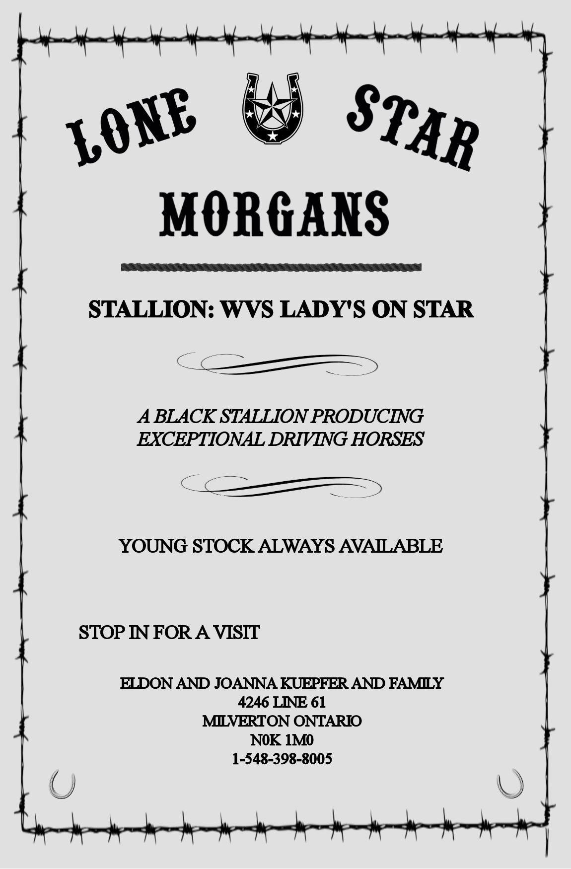 Joshua Streicher, Tel: 519-949-4556, Email: streicherstables@ibyfax.com