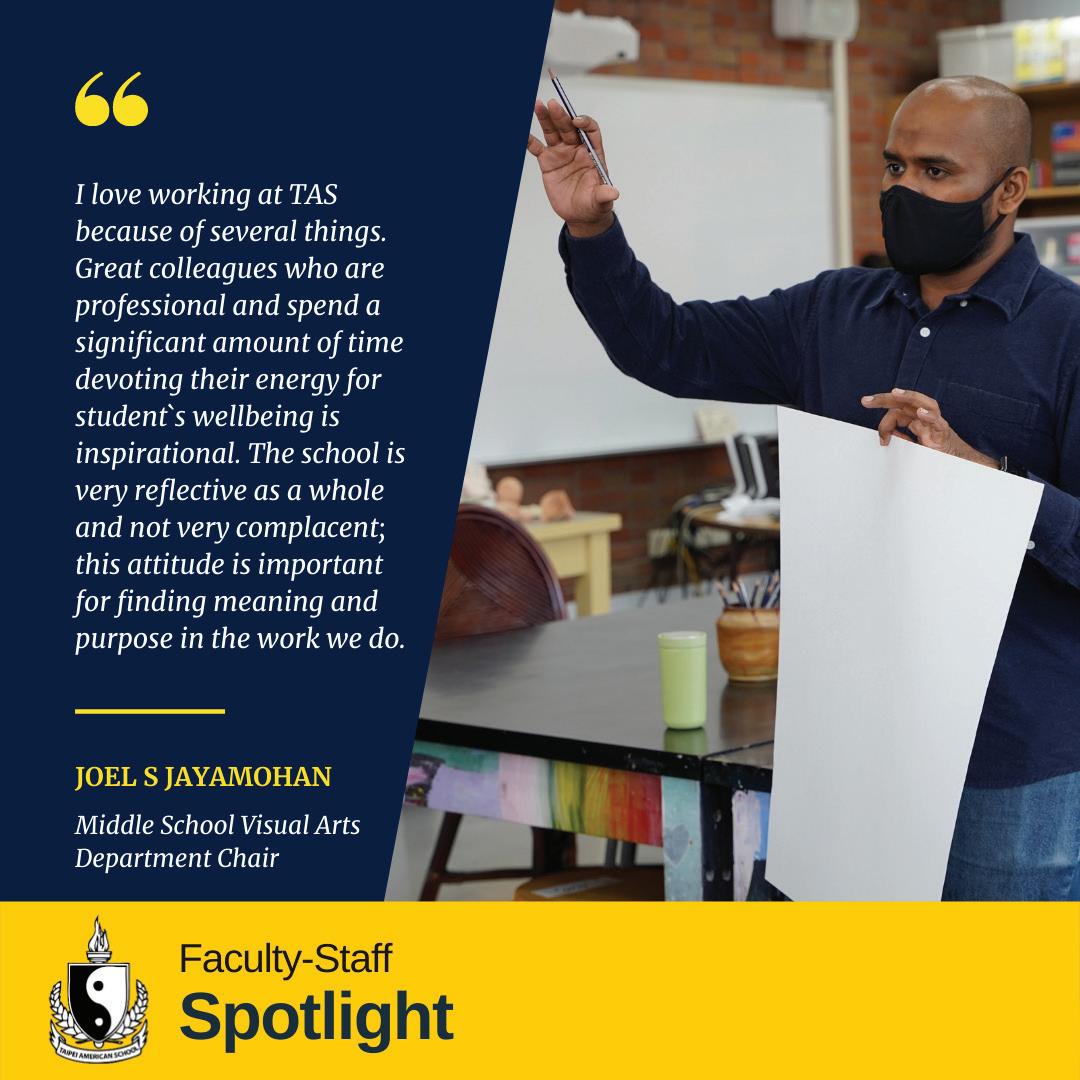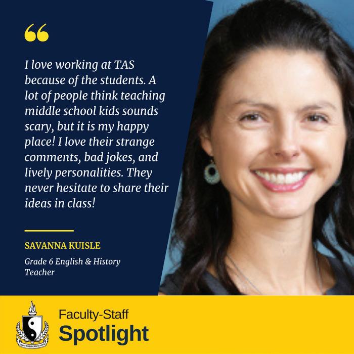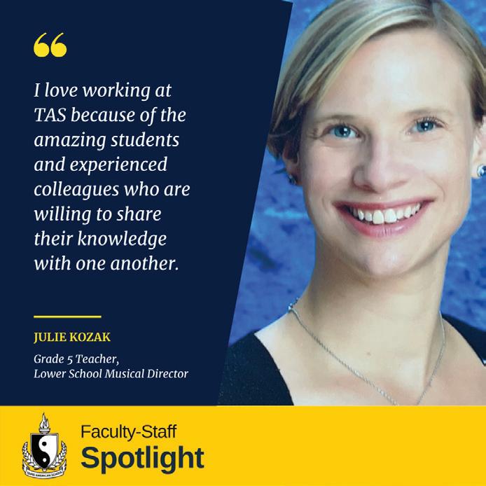 Please peruse this booklet, our website, and social media channels and listen and learn from the perspectives and stories herein. If there is one thing you need to know about Tigers, it is that any challenges that we have faced and will continue to face will be met head-on with both grit and grace. If you are looking for a new community to call home, as an educator (and, perhaps, also as a parent), I know you have made an excellent choice in choosing TAS. I hope you enjoy reading, watching, and engaging with us in your journey to find a new educational community.