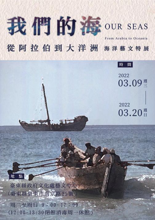 27 藝文進行式 What’s On 我們的海──從阿拉伯到大洋洲 雙蘇當代藝術聯展 大海是我們賴以生存、貿易和交通的憑藉。我 們的運輸、漁獲、旅遊、觀光或科學研究都在 這一片廣大的海域上,本次展覽「我們的海— 從阿拉伯到大洋洲」,場景橫跨印度洋到太平 洋,希望能夠呈現海域周圍民族從古到今的蕃 息歷史,還有觀光、自然生態等美麗的海上風 光,讓參觀者認識先民是如何依靠大海為生, 生動的呈現從古到今依然上演的故事。 蘇俊忠和蘇湘媚在繪畫領域上,隨著時間的歷練,持續融入生命、哲學、人際深度,本次 展覽以不一樣繪畫的面向、心態、題材呈現,用另類媒材如家電器材和天然素材來創作, 加入兩人各有不同的創意心思及領域,展現另層詮釋自然或反自然之美。 時間: 9:00-17:00 (周一休館) 地點:臺東藝文中心 1F 展覽室及畫廊 時間: 9:00-17:00 (周一休館) 地點:臺東藝文中心 2F 展覽室及畫廊 03/09 03/20 ∼ 03/09 03/20 ∼ 蘇俊忠 蘇湘媚