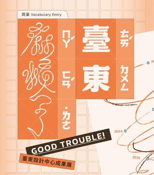 臺東設計中心以「麻煩」作為年度觀察切 面,推出成果展《麻煩了,臺東!Good Trouble》。展覽以一部臺東字典為起 點,從四個麻煩關鍵字展開 —— 很遠、 很少、一直一直、講究,拆解地方設計 的行動語法,展現臺東跨越距離、開創 先例、慢磨經營、堅持講究的生活解題 方法。邀請你揣摩臺東的語境,把 Good Trouble 當成日常設定,重新定義設計與 臺東之間的創造及可能。