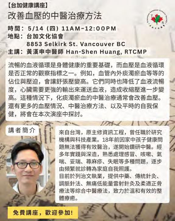 ● 1:00PM - 2:30PM 【生活資訊講座】