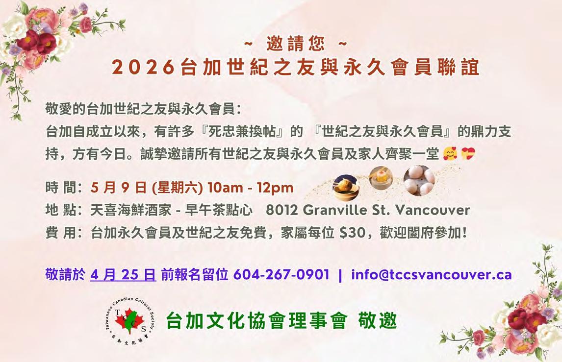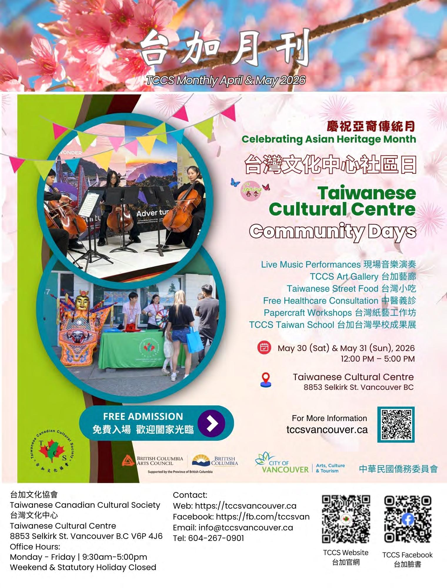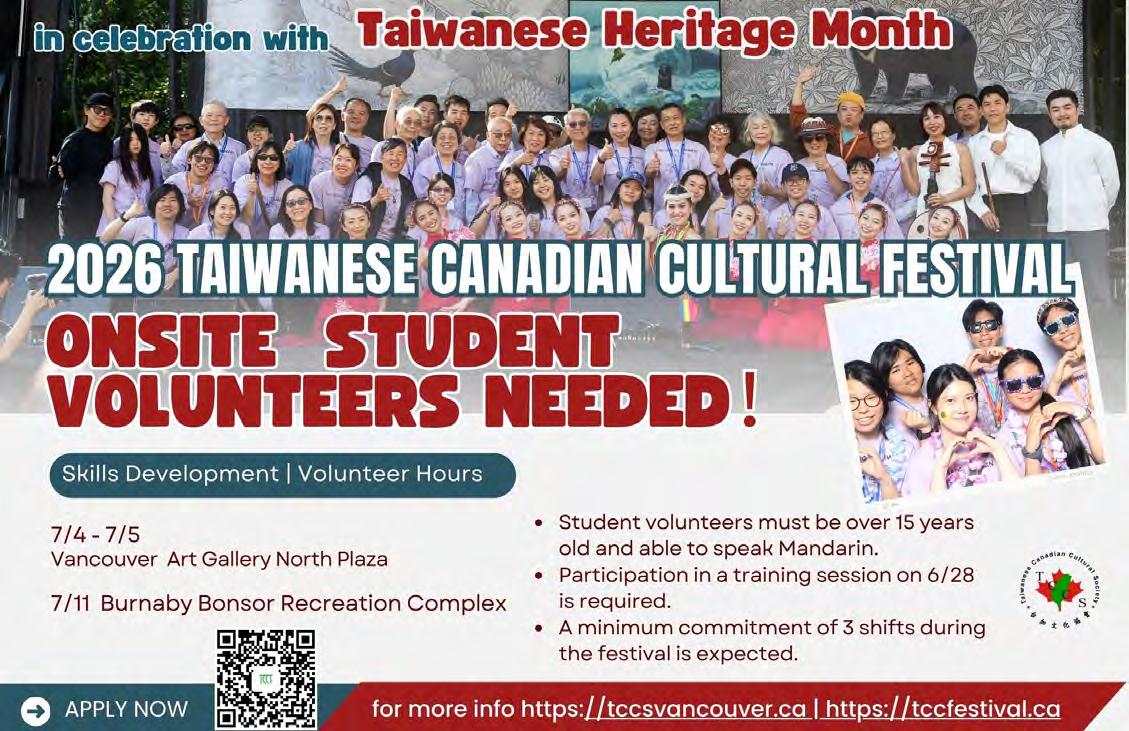 創校校長:廖純如 校長:連淑惠 報名洽詢:604-267-0901 / info@tccsvancouver.ca