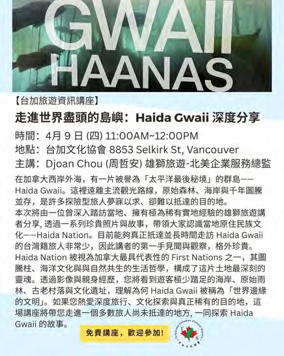 講題: 走進世界盡頭的島嶼: Haida Gwaii 深度分享