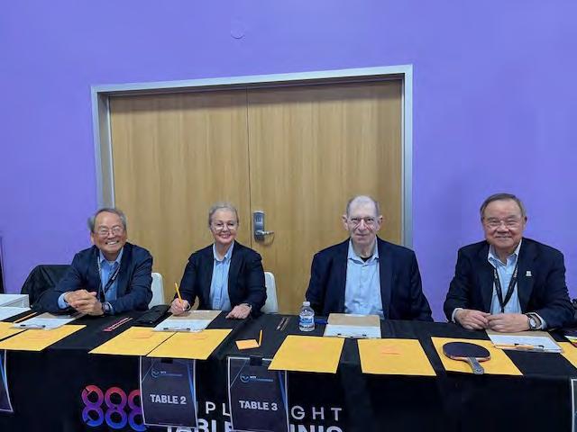 青年賽的副裁判長,這次往上升了一級,心理也感到 高興。在和組委會聯繫後,得到大部分的訊息,像比賽方式,裁 判員名單,酒店、場館的地址及機票、接送等問題,大致就緒 後,2026年的元旦,我從溫哥華搭機到舊金山。這是第一次在元 旦出國辦比賽。到達舊金山機場,就直接搭接駁車到酒店。在酒 店大廳遇見副裁判長(女,俄裔美國人),接著我們就到球館見 組委會及競賽經理,先商討一些比賽事項,當晚我還主持了一個 會議,叫Umpires Briefing (裁判員簡報),把一些要注意的事 項講清楚,我要求大家明天早上八點鐘到達會場。雖然比賽九點 鐘才開始,但第一天總有一些雜事發生,所以還是早一點到才 不會手忙腳亂。我們的酒店叫The Bay Landing,就在海灣旁, 可以欣賞飛機的起飛降落,距離場館888桌球中心,走路僅七分 鐘,還算方便。