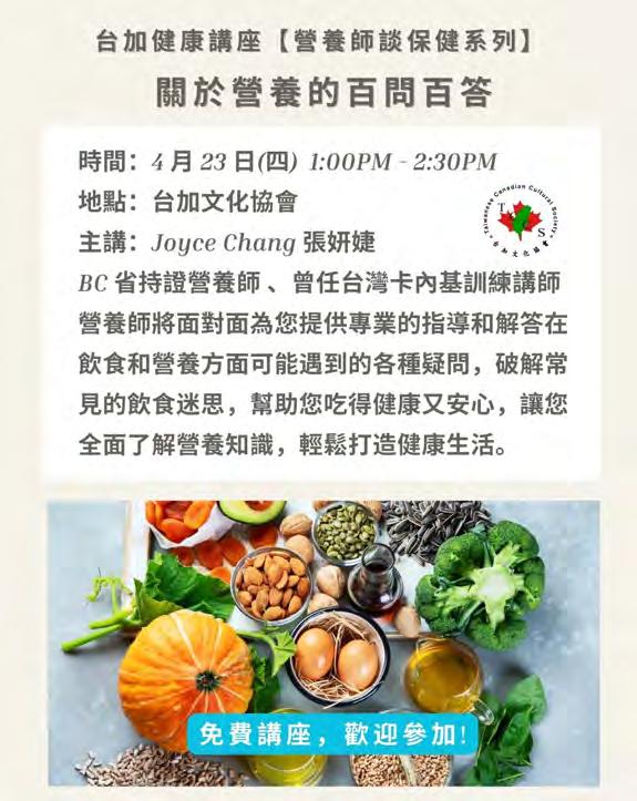講題: 關於營養的百問百答 主 主講: 張姸婕 Joyce Chang | B C 省持證營養師