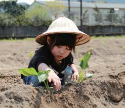 かな水で育てられている。体験エリアでは、サツマイモの苗植え体 験のほか、磚窯(レンガ窯)や土窯を使った焼き芋とバーベキュー
