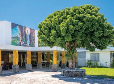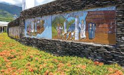 知本に来たら、温泉のほかに現地の台湾原住民卑南族 (プユマ族)の文化にも注目したい。「知本天主堂」 は、プユマ族の文化に彩られたカトリック教会の聖 堂。周囲を囲む石垣や聖堂の建物には、プユマ族に伝 わる石を重ねて家を造る「石板屋」の建設技法が使用 されており、聖堂内や建物外壁門、椅子などを飾る木 彫にもプユマ族の文様や部族に伝わる物語が刻まれて いる。キリスト教とプユマ族の文化が交じり合った独 特な美しさは一見の価値あり。