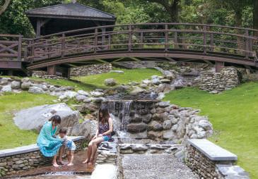 本溪に面した「東台溫泉飯店」の屋外温泉エリアは、ドイツや日本の温泉保養地をモデルに したレジャー温泉。施設が多彩で営業時間も長いため、家族で1日中たっぷり遊べる。