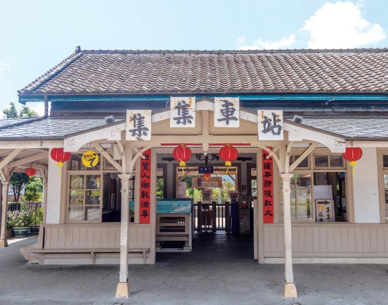 車埕 駅131 131 車埕 車埕酒莊 車埕駅は「最も美しい小さな駅」とも 呼ばれる集集線の終着駅。駅の開業は 1922年(大正11年)で、現在の木造駅 舎は921大地震で損壊した後に日月潭國 家風景區により再建されたもの。 木業展示館 貯木池 日本時代に木材、樟脳、蔗糖の集散地として発展した車埕は、日本人が水力発電所を建設した後に繁栄を極めた。 1970 年代以降は木業が衰退し街の繁 栄も過去のものとなったが、近年は木業の歴史を伝える産業遺産と美しい木造駅舎が観光スポットとして注目を集めている。「木業展示館」は旧製材所を再整備した資料館。館内には実際に使用されていたクレーンや鉄道の引き込み線や巨大な材木が残されており、当時の作業工程や現地の歴史を間近に学ぶことができる。木工品や特産品の販売所や木材加工 D I Y 体験コーナーも人気。 製材所の向かいに位置する池では、かつて大量の原木が保存されていた。池のほとりには原木を吊り上げるためのクレーン小屋が、道路を挟んだ木業展示館側には駅に続く線路が残っている。池の周囲にはクスノ キや落羽松 (ラクウショウ)などが 植えられ、美しい風景を眺めながら 散策が楽しめる。 南投縣水里鄉車 村民權巷 110-2 號 9:30-17:00、 土曜・日曜・祝日 9:30-17:30 南投縣水里鄉車 村民權巷 110-2 號 台湾鉄道車 駅 から徒歩で各ス ポットへ 美しい和風建築の 木造駅舎 山に囲まれた開放的な駅ホーム 車 駅 18