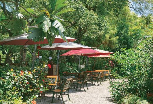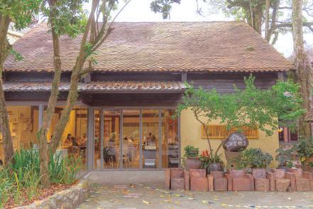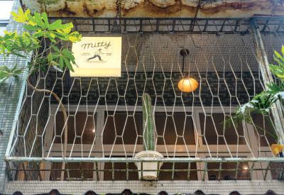 居心地の良い空間と美味しい料理で人気を集めるカ フェ。店名の「月霞」は1950年代ごろに多かった女性名で、「月のよ うに温かな光の、我が家のような雰囲気の場所となるように」というオー ナーの願いが込められている。観葉植物の緑に覆われた店舗正面はリゾー ト感あふれる佇まい。もとは赤峰街でよく見かけるバイクの修繕工場だっ たという店舗は、天井の檜の梁とレンガの壁が見える落ち着いた空間に生 まれ変わっている。食事メニューのおすすめは、ホロホロほぐれる牛肉 と濃厚な赤ワインのソースが絶妙な牛肉の赤ワイン煮込み「濃醇紅酒燉牛 肉」。人気のサラダ「烤雞腿溫沙拉」は、グリルチキン、紅茶と烏龍茶で