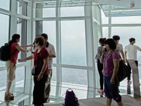 信義商圈 M R T台北 101/ 世貿駅から M R 政府駅の間に広がる繁華街。台北 101 をはじめとした十数軒のデパート、映画館、レストラン、高級ホテルが立ち並び、台北のトレンドの発信地となっている。休日にはイベントが行われることが多く、パフォーマーやバンドによる大道芸やライブなどの路上パフォーマンスを見ること議中心や台北世界貿易中心 台北市信義區市府路 45 號 02-8101-8800 11:00-19:00、土曜・日曜・祝日 10:00-19:00 一般(88F、89F、91F):NT$600、 SKYLINE460(88F、89F、91F、101F):NT$3000 www.taipei-101.com.tw/ja MRT 台北 101 /世貿駅下車すぐ 台北市信義區 MRT 台北 101 /世貿駅、MRT 市政府駅下車すぐ 今回のランタンフェスティバルのメインエリアは台北市 東部の4会場。信義商圏・台北101・四四南村などが集 まる繁華街に展開する「未来展区」、国父紀念館の「中 央展区」、東区商圈を会場にした「光展区」、文化施 設の松山文創園区と台北ドームの台北文化体育園区から なる「源展区」だ。それぞれの会場へは徒歩で移動でき る。いつもより華やいだ街の雰囲気を満喫しよう。 台北101 高さ 508m ・地上 101 階の「台北 101 」は台湾最高層のビル。街中からその 姿を目にすることができる台北のランドマークとして親しまれている。地下 1 階から地上 6 階まではショッピングモール、 85 86階 は高層階レストラン、 88 階から 101 階が展 望台となっており、高さ 382m ・地上 89階 の屋内展望台までは 5 階の受付階から高速エ レベーターに乗ってわずか 37 秒で到着でき る。さらに高さ 390m の 91 階には屋外展望 台も。また高さ 448m ・ 101 階の特別フ ロア「S K YL IN E 460 」の屋外デッキ では、安全器具を身に着けてスリリングな空中散歩が体験できる。それぞれの展望台から 見下ろす台北の大パノラマの眺望は圧巻! 未来展区 SKYLINE460 台北市内の大パノラマ 89階屋内展望台 メイン会場 12 T 1 0 1 / T 市 1 0 1