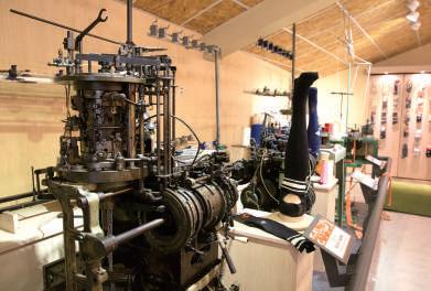 発展した靴下産業の歴史を紹介する パネル展示のほか、各時代の機材や 糸のサンプルなどもあり、靴下の製 造過程を詳しく学ぶことができる。