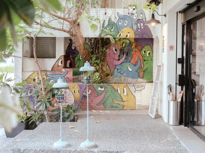 ら西洋薬の薬局「長泰西薬房」が商いを営んでいた。現在建物を管理する地方創生団体「山海屯社会企業」は、文化部の老街再生計画の補助金を受け、薬局時代の建物の構造と内装を可能な限り保存しながら店舗の改修を行った。店内には、薬局店主一家の古い写真をはじめ、顧客が座りカウンターに立つ店主夫人と会話を楽しんだベンチなどが展示されており、薬局時代の面影が感じられる。