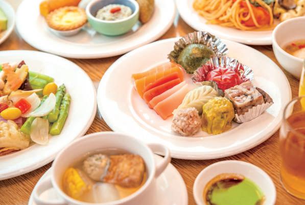名店 5 店とコラボレーションした期間限定特別メニューを 提供中。ゲストは各地をめぐって長い列に並ぶことなく、 五つ星ホテルで有名店の味が楽しめる。各店の台湾式朝食 メニューは以下の通り。新北市三重区「正義豆漿店」の燒 餅油條(揚げパン)、鹹豆漿(豆乳スープ)、豆漿(豆乳・ 熱 / 冷)、米漿(ライスミルク)。新北市永和区「永和周 家涼麵」のレトロな軍人村風味の涼麵(冷やし麺)。台北 市萬華の 100 年の歴史がある老舗「兩喜號」の 魷 魚 焿 米 粉(ビーフン入りスルメイカのとろみスープ)。台南のミ シュランビブグルマン選出の「府城食府」の芋籤粿(タロ イモ餅)。40 年あまりの歴史を持つ高雄武廟の行列店「雙 豪油飯」の花生一口粽(落花生入り中華粽)。