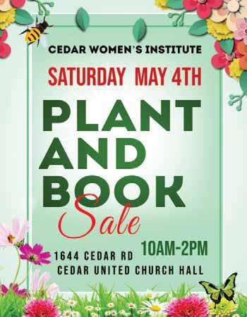 PS: The Cedar Women's Institute will also have some yummy cut organic rhubarb, raspberry plants, aged organic horse “nuggets,” perhaps a few baked treats and who knows what all. Be there or be square.