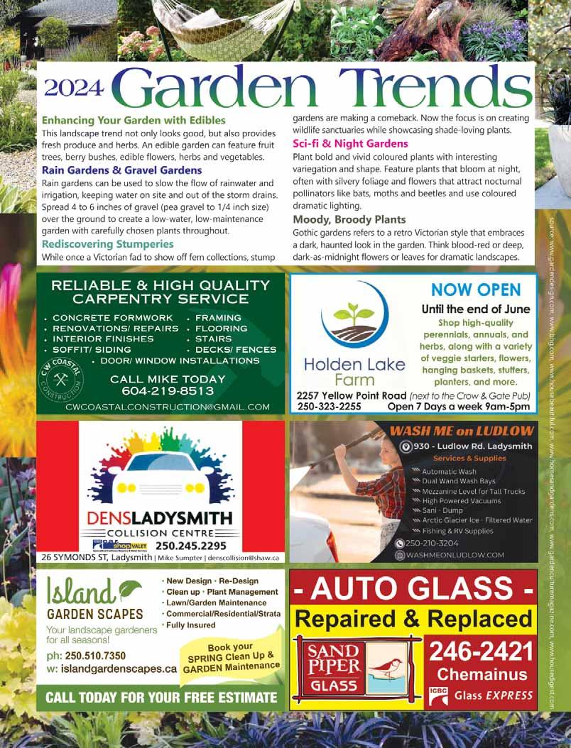 CEDAR GARDEN PRODUCTS. Raised patio herb and garden beds, pl anters and trellises. Call Ken at 250-246-4766 or self-serve at 10729 Rocky Beach Rd., Saltair.