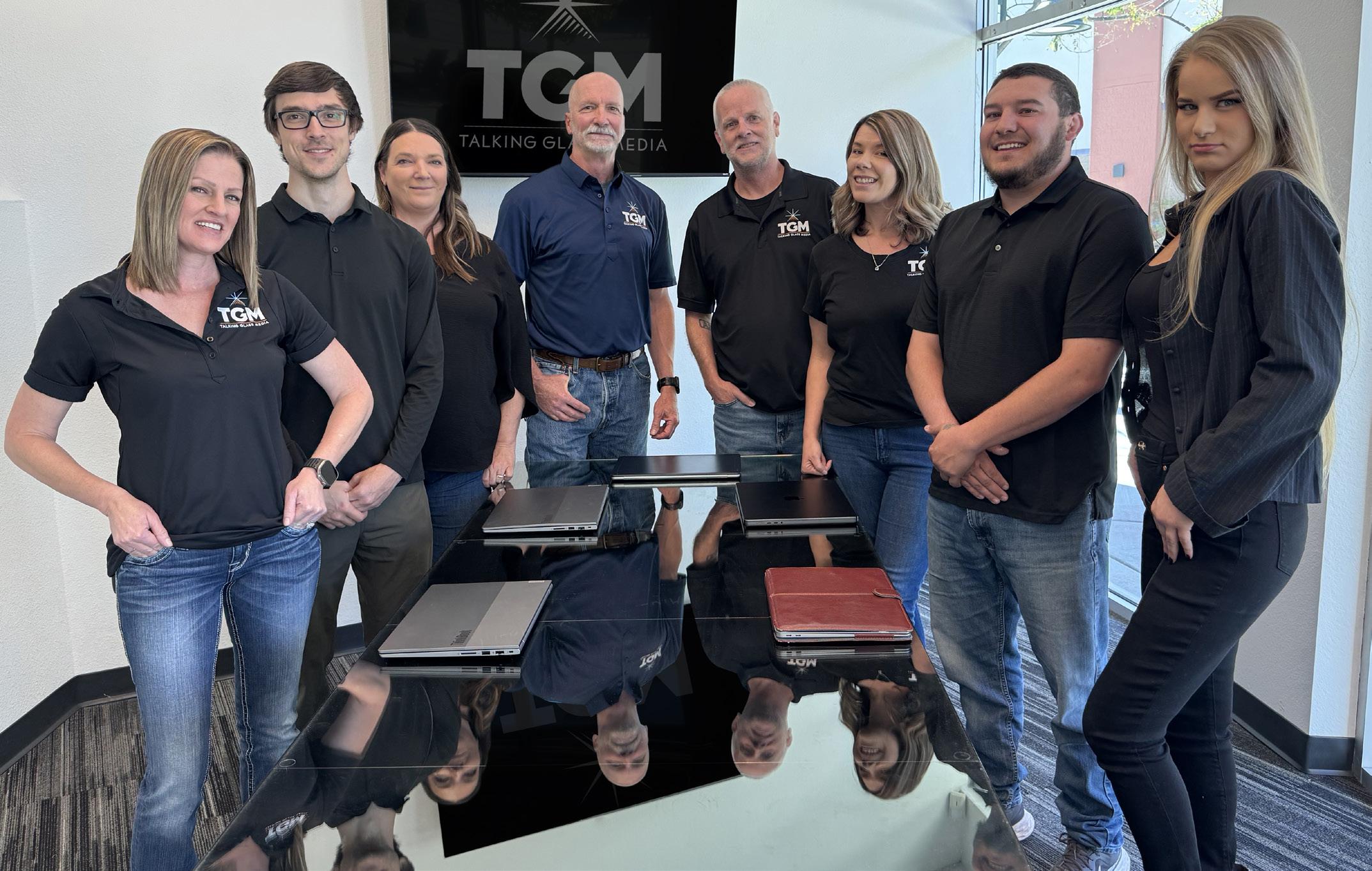 L-R: Megan McClenahan-Sales, Sean Fain-Innovations Manager, Elicia Morigeau-Sales Director, Guy Roginson-Director, Talking Glass Media, Tony Tedford-Multimedia Producer, Jessica Molyneux-Operations Manager, Chance Weir-Sales, Shannon Palmer-Publishing Coordinator