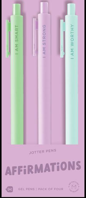 Pen bars rejoice. Smooth writing .5 mm gel with colored ink that matches the barrel (except where noted). Jotters come 25 per set, in 24 unique colors. Glass cup optional. Jot the rainbow!