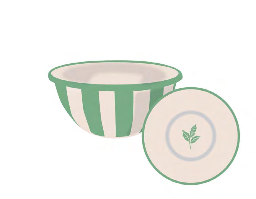 ENML-BOWL-GSTRP-16 ENAMEL, BOWL, GREEN STRIPE, 16CM INNER 6