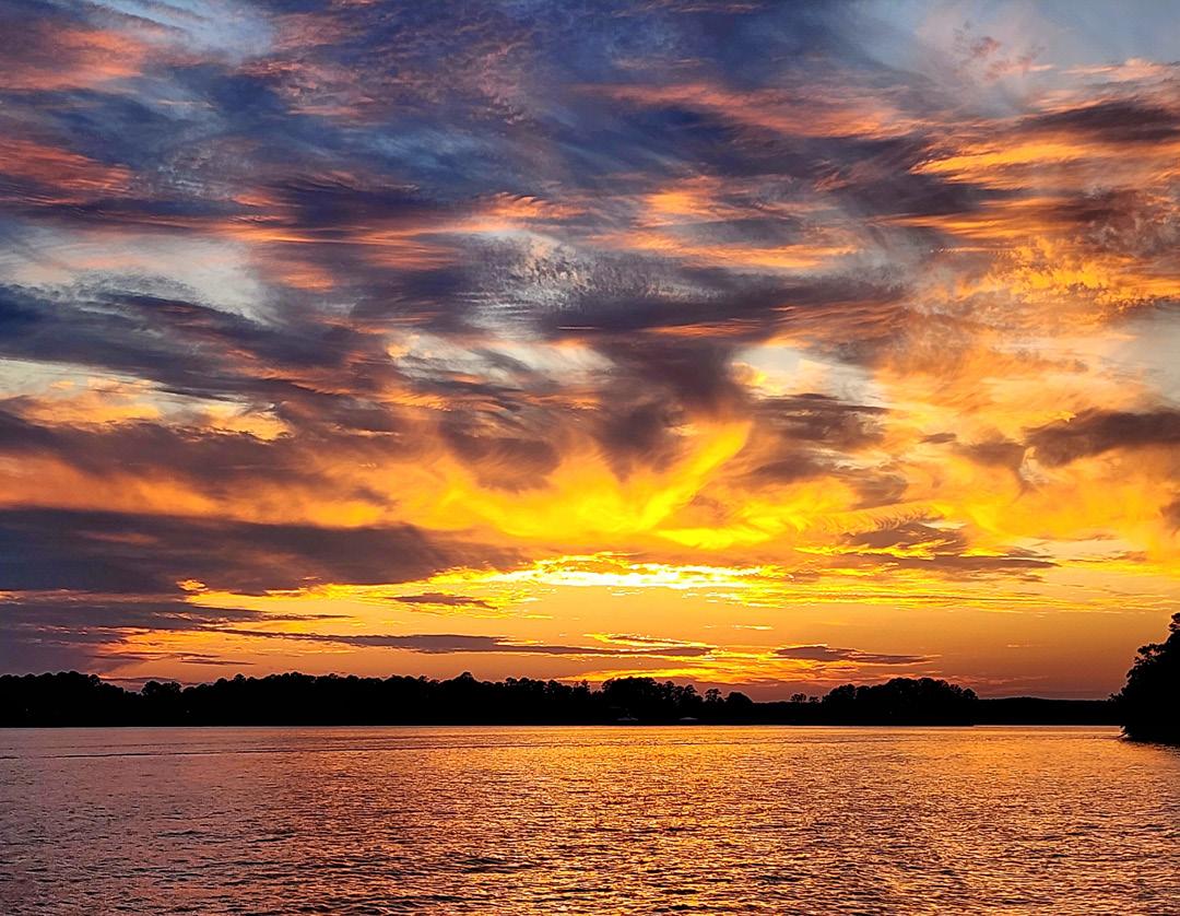 (1) Though obscured by cloud cover, the huge beaver moon cast light across the Lake Martin sky. (2) Kaelin Clark took this photo of her mother, Angie Pridgen, at The Stables. (3) George, Andrew and Henry Walters make fishing memories at Lake Martin. (4) Sam Garrett took this spectacular photo of a controlled burn at Madwind Creek in March. (5) The sun casts a golden light across Lake Martin on Labor Day. (6) Andrea McCormack shot this photo of Marley at the end of a perfect Lake Martin day.