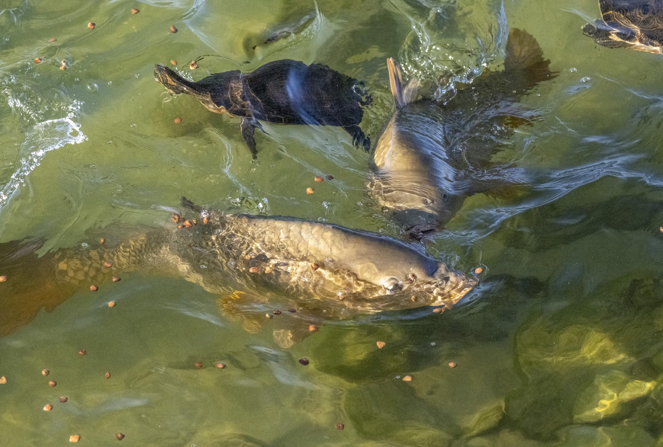 Kenneth Boone shares an underwater view of the fish and turtle feeding at Kowaliga Restaurant.