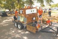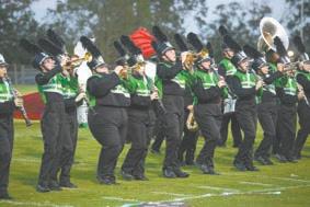show and a little bit of the Big Apple — a 30-foot Empire State Building to the 50-yard line to help celebrate county bands. The show included a Central Park bench with a light post. It all helped create a show the ECHS band has become known for.