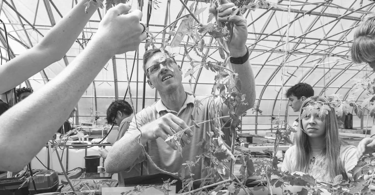 tomatoes in an aquaculture system in the high school’s greenhouse. While Free knows the science behind the project, he has never grown fish in tanks and recycled the byproducts to