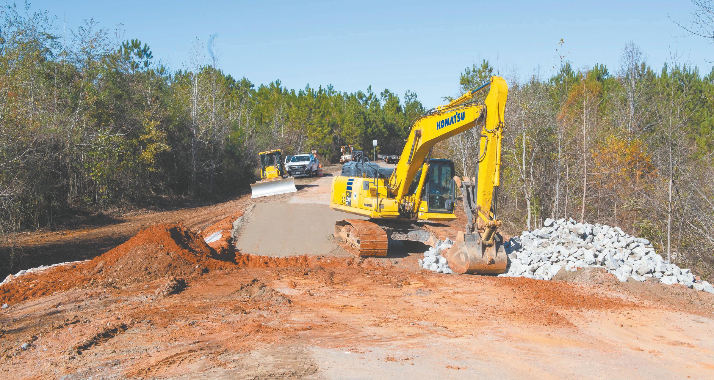 Sometimes county employees use rental equipment to place very large diameter pipes in place. For the Prospect Cutoff project, the county’s largest excavator handled setting the two