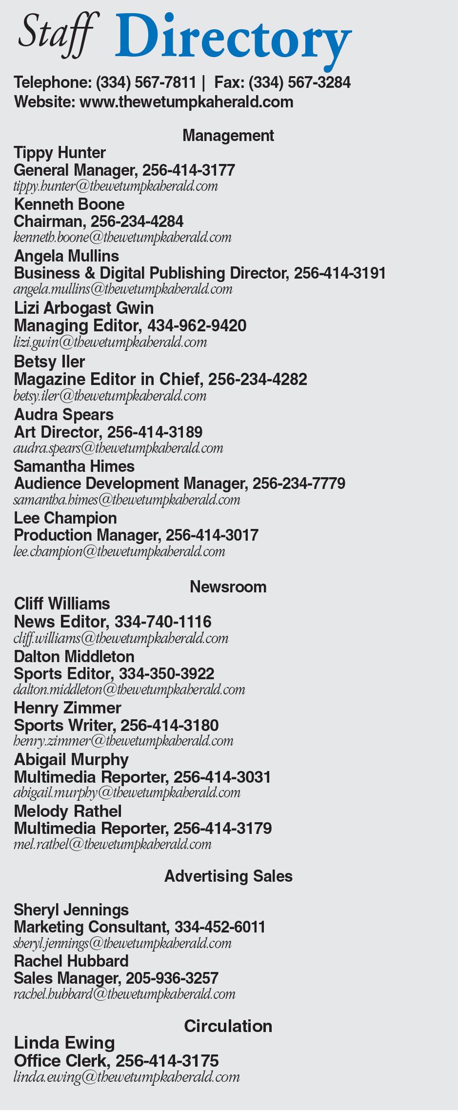 Lizi Arbogast Gwin is the managing editor of Tallapoosa Publishers Inc. She can be reached via phone at 434962-9420 or via email at lizi. gwin@alexcityoutlook.com.