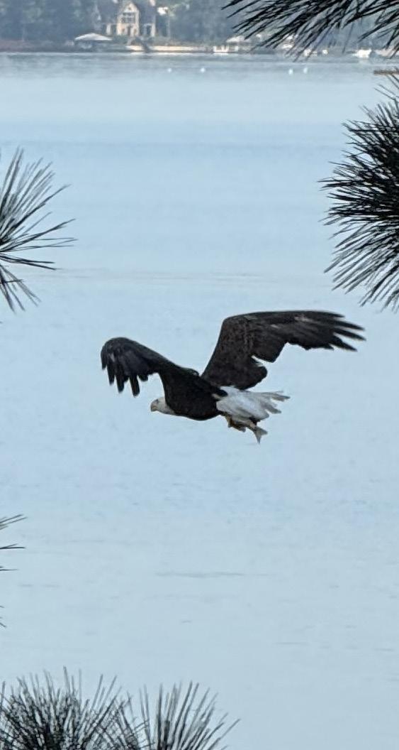 (1) Stormie Bryant captured a stunning display of cloud reflections over Lake Martin while fishing from the Alexander City boat ramp. (2) A bald eagle takes flight near Smith Marina with lunch in its talons.