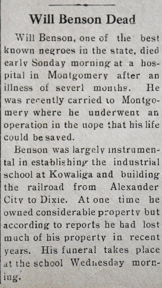 This past fall, a fascinating young man walked into my office for an interview about his Harvard thesis, centered around the lost town of Kowaliga and its founders, John Jackson Benson and his son, William E. Benson.