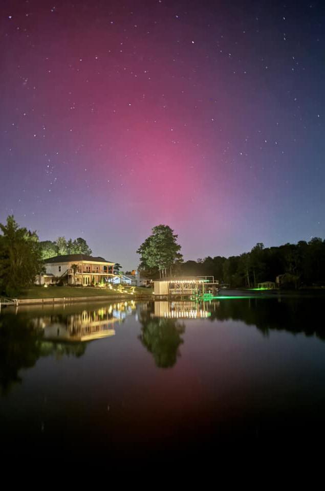(1) Kasen Moore, Brooks Adams and Houlton Moore checked out the Kowaliga beach during a recent Lake Martin visit. (2) It's so easy to tie up the boat at a waterfront campsite at Wind Creek State Park, and Kaci Lackey discovered it makes a great photo as well. (3) The northern lights were visible on October 10. (4) Adalyn and Levi Turner create a timeless memory on Lake Martin, fishing with their puppy, Finn. (5) Linda Faulk was at Overlook Park when she caught this photo of the Russell Lands July 4th fireworks show. (6) Jen Nicosia captured this photo of the northern lights.